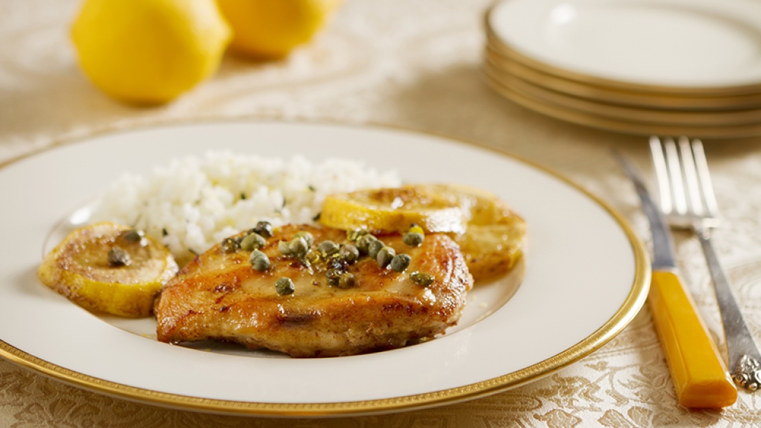Chicken Piccata and Roasted Broccoli with Pine Nuts. Click here for the full recipe