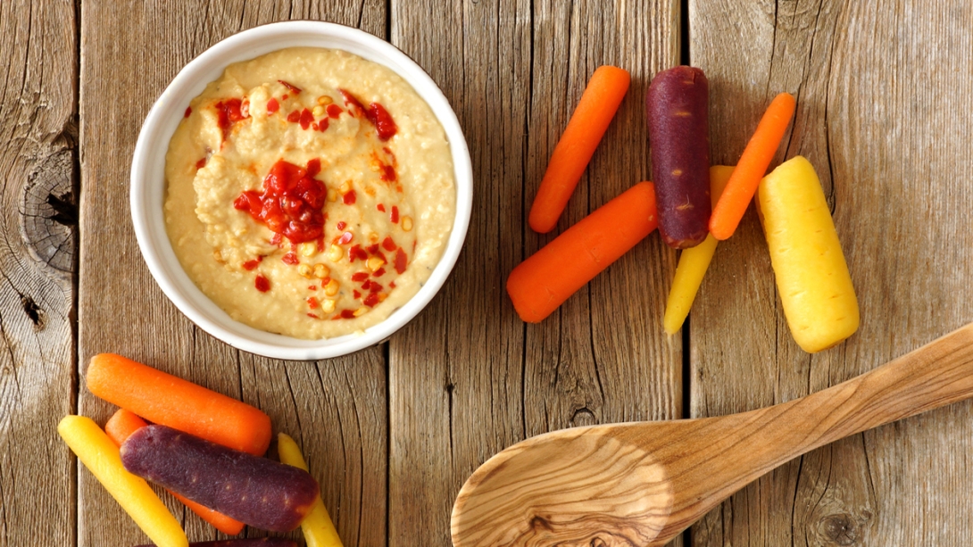 Roasted Red Pepper Hummus. Click here for the full recipe