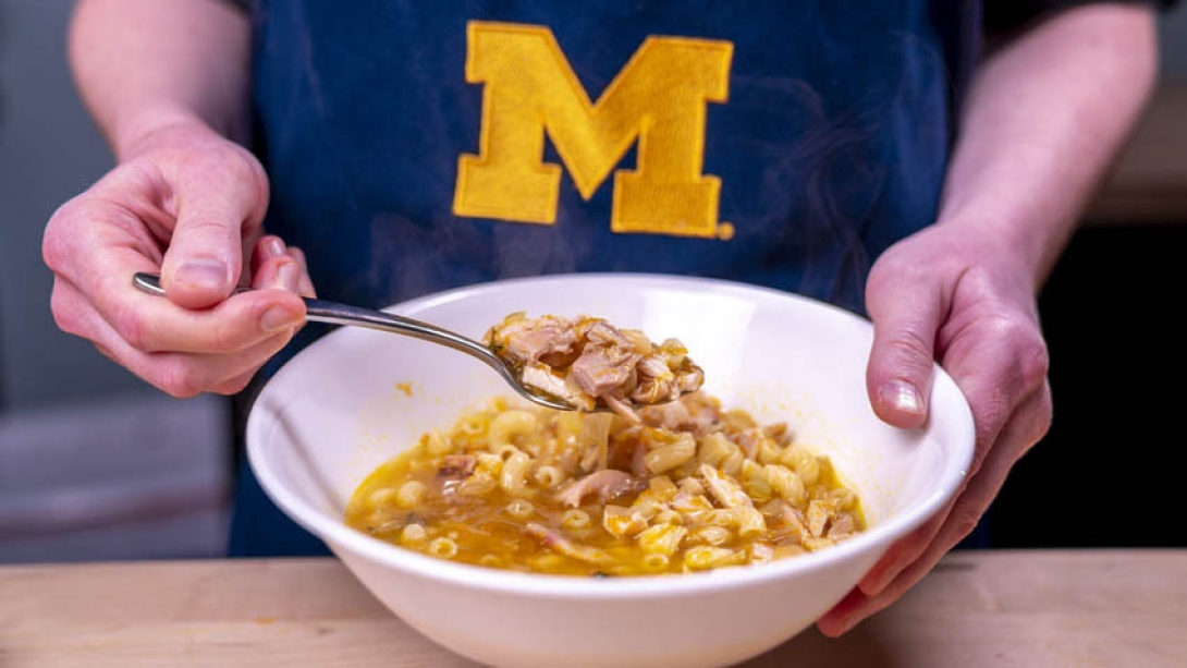 If you're looking for a quick recipe using common kitchen ingredients, try this chicken and pasta soup recipe, which feeds four to six people.