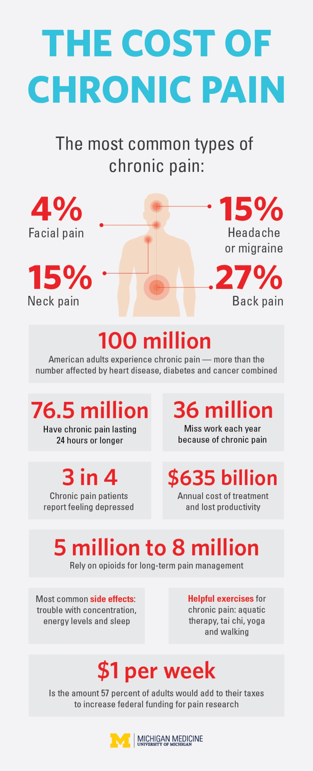 "If all chronic pain conditions were lumped together and considered to be a single disease, as many pain researchers view the problem, this aggregate would be the most common, disabling and expensive health problem in the world," says Daniel Clauw, M.D., director of Michigan Medicine's Chronic Pain and Fatigue Research Center.