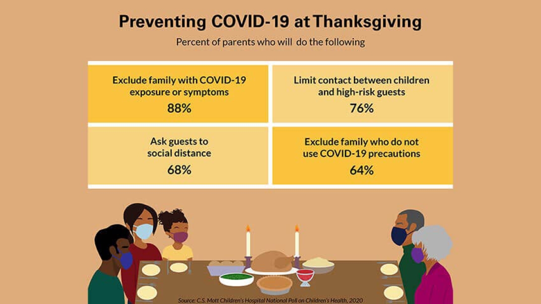 Many parents also plan to take extra steps to protect older adults. Nine in 10 parents say Thanksgiving gatherings typically include grandparents, and three-quarters of parents will try to limit contact between their child and high-risk guests, including seniors or people with medical conditions.