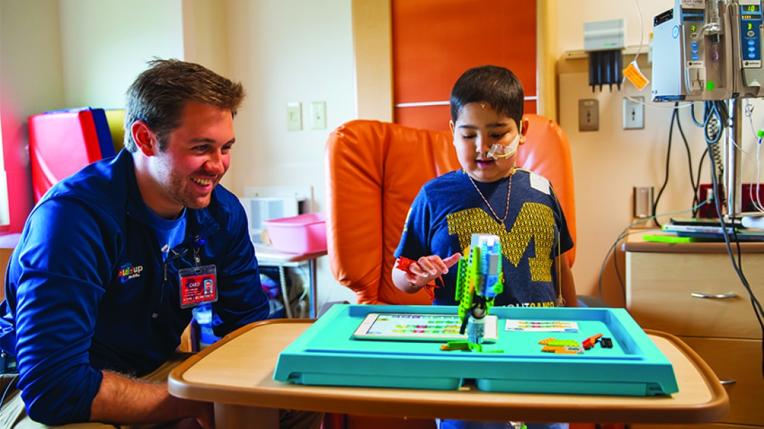 A U-M grad’s custom Lego robotics kits help keep young patients’ minds busy during hospital stays while teaching basic coding and educational skills.
