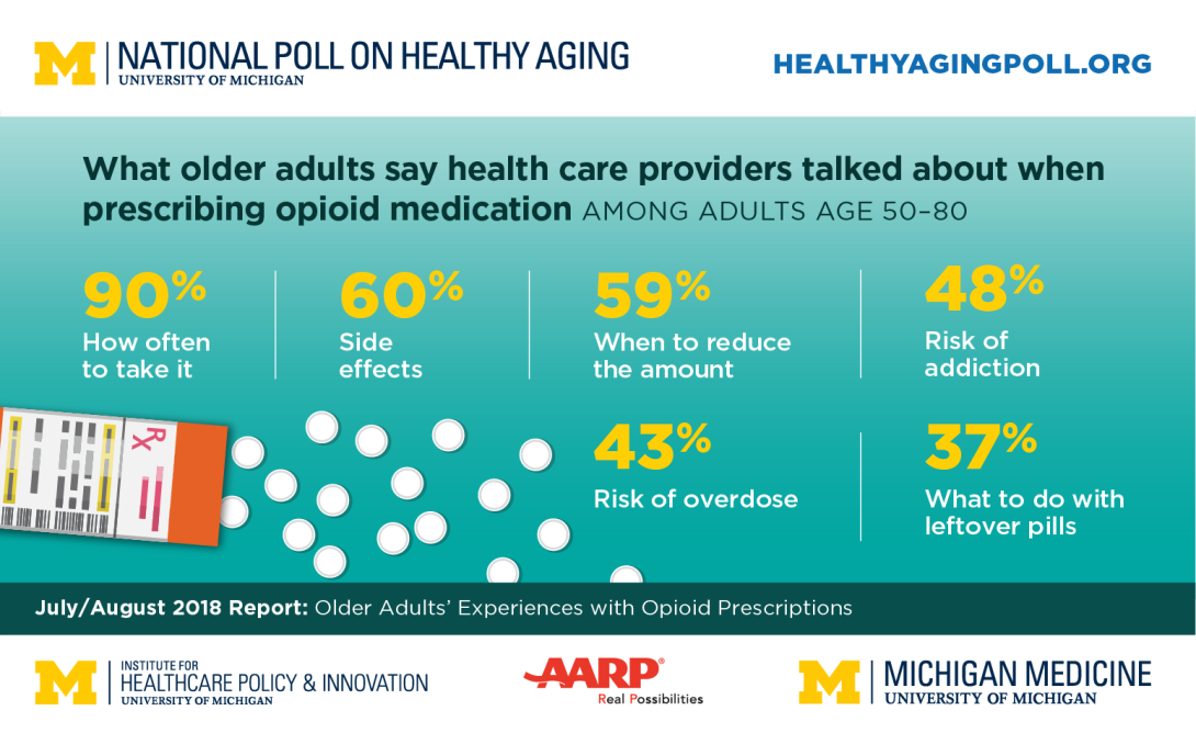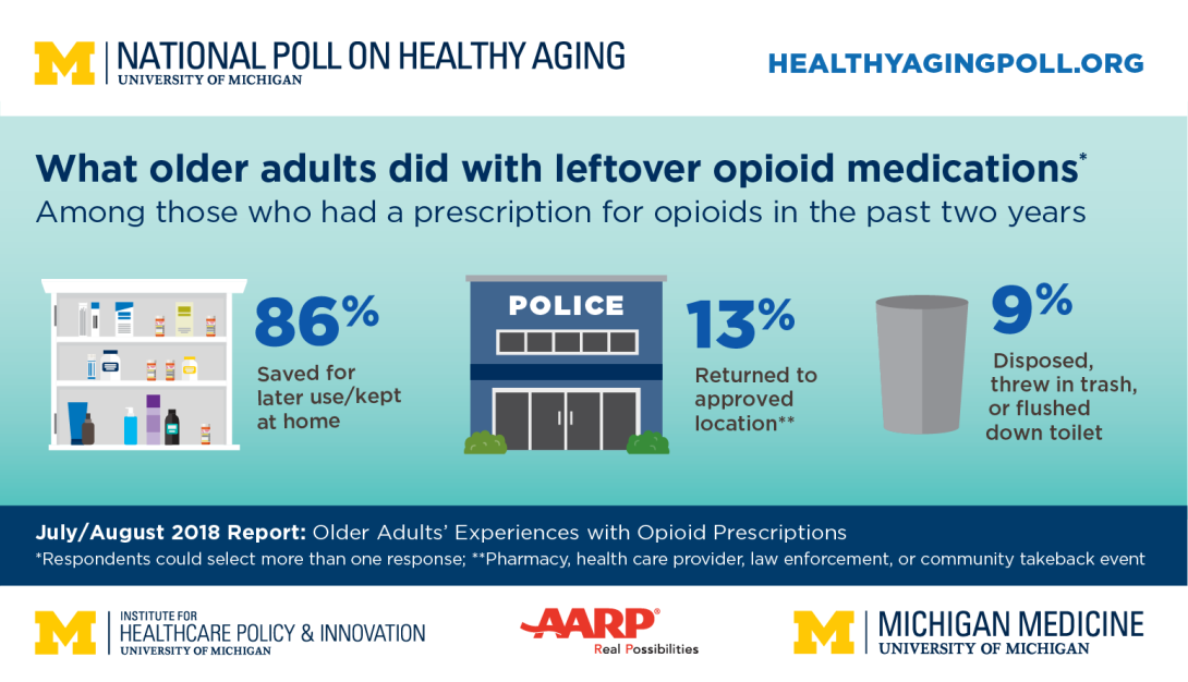 The new findings, from the National Poll on Healthy Aging, suggest a major opportunity for providers and community organizations to focus on safe opioid use and safe disposal among older Americans. These findings also could help state and federal policymakers understand the views of a key demographic group at a critical time.