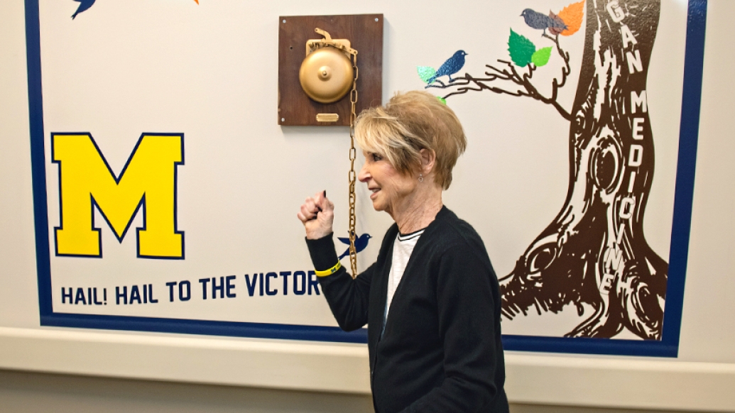 Barker completed treatment in December 2018 and, on her last day of radiation therapy, rang the victory bell surrounded by her care team and the family members who accompanied her to every appointment.