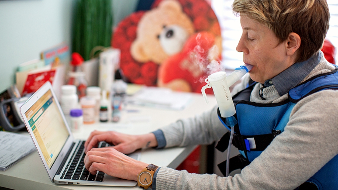 "I grew up talking about CF — I'd bring my vest and nebulizers to school and teach kids about CF," she says of her treatment equipment.