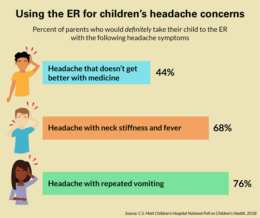 Just 4 percent would visit an emergency room for a child's headache. Most — nearly 75 percent — said they'd consult their family physician.